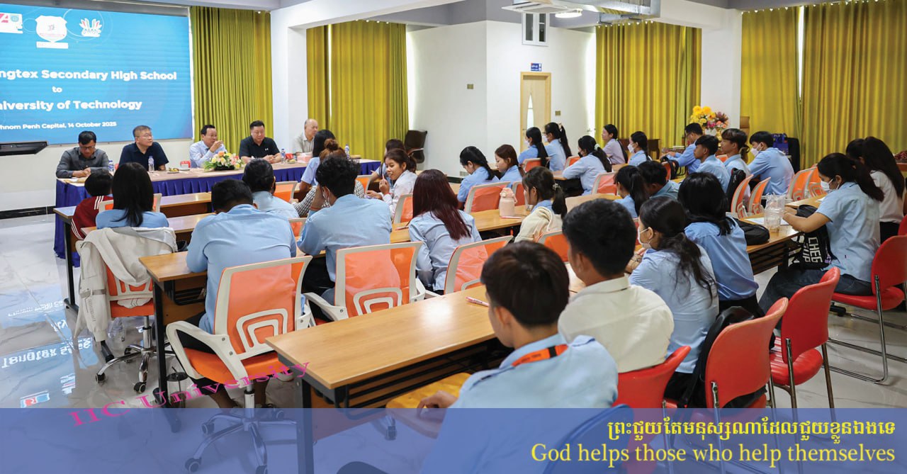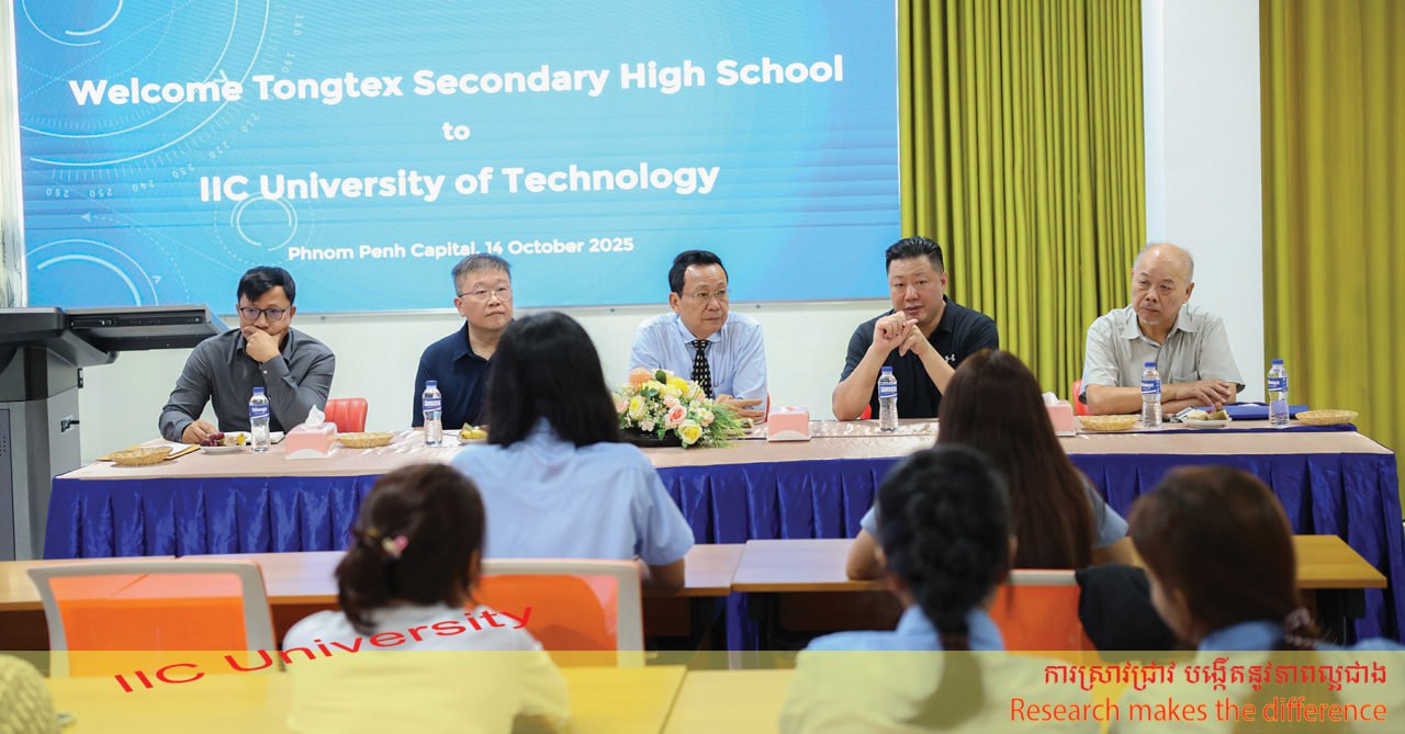កាលពីថ្ងៃទី 14 ខែតុលា ឆ្នាំ2025 គណៈប្រតិភូសាលា Tongtex Secondary High School កោះតៃវ៉ាន់ បានធ្វើដំណើរមកទស្សនកិច្ចនៅសាកលវិទ្យាល័យអាយអាយស៊ីនៃបច្ចេកវិទ្យា (IIC) ក្នុងគោលបំណងពិភាក្សាពាក់ព័ន្ធនឹងការសហការជាដៃគូអប់រំ និងធ្វើការផ្សព្វផ្សាយកម្មវិធីជ្រើសរើសនិស្សិតកម្ពុជាចុះហ្វឹកហាត់ការងារនៅតៃវ៉ាន់ ដែលនិស្សិតនឹងទទួលបានប្រាក់ឈ្នួលសមរម្យក្នុងអំឡុងពេលហ្វឹកហាត់។