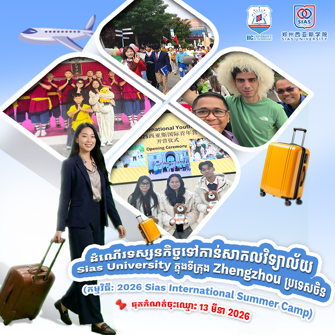 សកម្មភាពនិស្សិតរបស់សាកលវិទ្យាល័យអាយអាយស៊ីនៃបច្ចេកវិទ្យាចំនួន3នាក់ ដែលបានចូលរួមក្នុងកម្មវិធី The 2025 Sias Global Youth Camp នៅទីក្រុង Zhengzhou ខេត្ត Henan ប្រទេសចិន