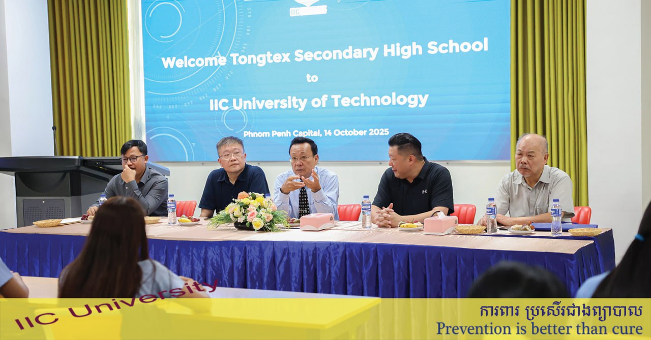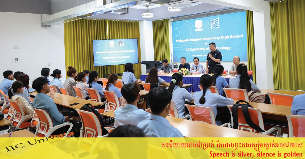 កាលពីថ្ងៃទី 14 ខែតុលា ឆ្នាំ2025 គណៈប្រតិភូសាលា Tongtex Secondary High School កោះតៃវ៉ាន់ បានធ្វើដំណើរមកទស្សនកិច្ចនៅសាកលវិទ្យាល័យអាយអាយស៊ីនៃបច្ចេកវិទ្យា (IIC) ក្នុងគោលបំណងពិភាក្សាពាក់ព័ន្ធនឹងការសហការជាដៃគូអប់រំ និងធ្វើការផ្សព្វផ្សាយកម្មវិធីជ្រើសរើសនិស្សិតកម្ពុជាចុះហ្វឹកហាត់ការងារនៅតៃវ៉ាន់ ដែលនិស្សិតនឹងទទួលបានប្រាក់ឈ្នួលសមរម្យក្នុងអំឡុងពេលហ្វឹកហាត់។