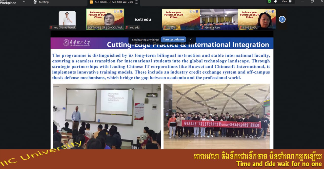 សាកលវិទ្យាល័យIIC និងសាកលវិទ្យាល័យ East China University of Technology (ECUT) បានរៀបចំសិក្ខាសាលាតាមអនឡាញ ស្តីពី គន្លឹះដើម្បីទទួលបានអាហារូបករណ៍ពីសាកលវិទ្យាល័យ ECUT