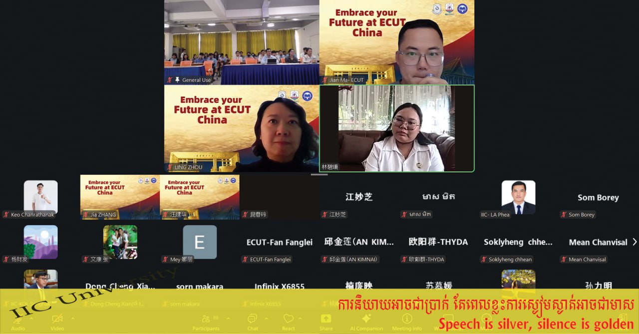 សាកលវិទ្យាល័យIIC និងសាកលវិទ្យាល័យ East China University of Technology (ECUT) បានរៀបចំសិក្ខាសាលាតាមអនឡាញ ស្តីពី គន្លឹះដើម្បីទទួលបានអាហារូបករណ៍ពីសាកលវិទ្យាល័យ ECUT